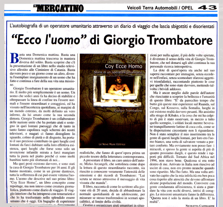 Leggi la Presentazione di Coy Ecce Homo Premessa di Carlo Romeo (Dir. RAI Sociale) ORDINA IL LIBRO